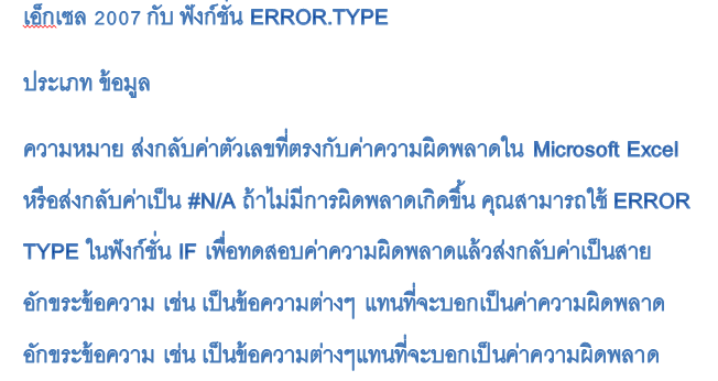 เอ็กเซล 2007 กับ ฟังก์ชั่น ERROR.TYPE